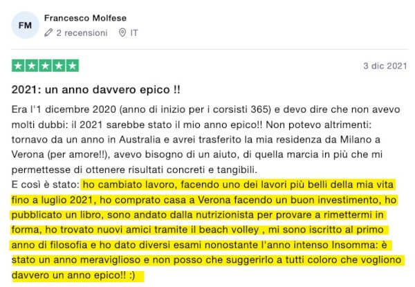 Sapere che grazie ai nostri contenuti e ai nostri programma avanzati riusciamo ad avere un impatto positivo sulle vite di chi ci segue mi rende particolarmente felice e orgoglioso: