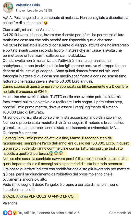 Per farlo userò le parole di Angelo, un lettore di EfficaceMente che a mio avviso è stato in grado di fotografare perfettamente questo aspetto in un post di qualche anno fa sul nostro gruppo Facebook: